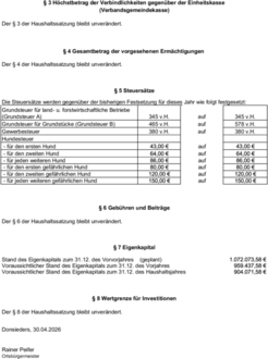Der Haushaltsplan liegt zur Einsichtnahme werktags, außer samstags, in der Zeit vom 07.04.2026 bis einschließlich 15.04.2026 während der Dienstzeiten bei der Verbandsgemeindeverwaltung Rodalben, Am Rathaus 9, 66976 Rodalben, Zimmer 213, öffentlich aus.