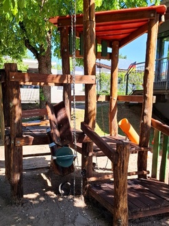 Die Holzteile der Spielgeräte wurden von fleißigen Händen intensiv gereinigt und imprägniert. Dank des Einsatzes von Wasser, Bürsten, Schleifmaschinen und viel Hingabe strahlen die Spielgeräte nun wieder in vollem Glanz und sind für die kommende Saison bestens gerüstet.
