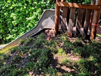 Ein weiteres Highlight des Arbeitseinsatzes war die Bepflanzung des neu angelegten Rutschenhangs. Mit großer Sorgfalt wurden passende Pflanzen gesetzt, die nicht nur das Gelände optisch aufwerten, sondern auch zur Stabilisierung des Hangs beitragen. Auch der Sandkasten wurde gründlich durchgearbeitet, sodass die Kinder nun wieder mit weichem, lockerem Sand spielen können.