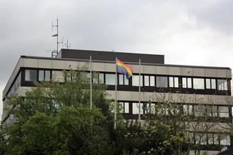 Anlässlich des Internationalen Tages gegen Homo-, Bi-, lnter- und Transphobie (IDAHOBIT) hat der Landkreis Südwestpfalz am 17.05.2023 eine Regenbogenflagge gehisst. Die Fahne weht am IDAHOBIT als sichtbarer Ausdruck für Vielfalt und Toleranz erstmals vor dem Hauptgebäude der Kreisverwaltung.