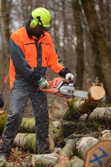 Wer sein Brennholz selber machen möchte, muss zur eigenen Sicherheit die vorherige Teilnahme an einem Motorsägenkurs nachweisen sowie über eine persönliche Schutzausrüstung verfügen. Sie umfasst Helm mit Gesichts- und Gehörschutz, Lederhandschuhe, Schnittschutzhose und Sicherheitsschuhe mit Schnittschutzeinlage. Alleinarbeit mit der Motorsäge ist wegen der erhöhten Unfallgefahr tabu.