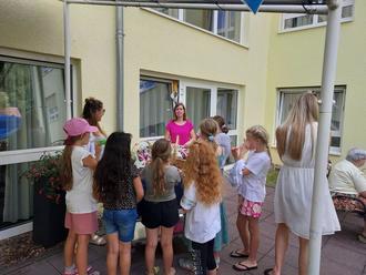 Letzten Donnerstag machten sich die Kinder der Tanz-AG, gemeinsam mit ihrer Lehrerin Frau Lisa Becker zu Fuß, auf den Weg zum nahegelegenen Senioren-Zentrum. Die Bewohner warteten schon neugierig und freudestrahlend auf den angekündigten Besuch. Nach dem Eintreffen der Kinder und einer kurzen Begrüßung, konnte es endlich losgehen.