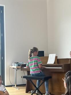 Buntes Programm boten die Kinder der Musikalischen Früherziehung, wie auch Maya Franz und der fünfjährigen Philippa Woll als jüngster Künstlerin bei ihrem ersten Soloauftritt. Das Picknick wurde im Anschluss an das Konzert nachgeholt. Auch beim geänderten Ablauf hatten die Kinder viel Spaß an einem gelungenen Nachmittag mit Musik, Gesang und Bewegung.