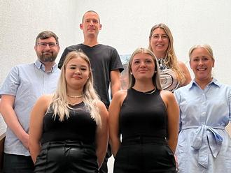 Unser Foto zeigt von links nach rechts (hintere Reihe) Tobias Frenkle, Steffen Scheid, Sabrina Fritzinger sowie (vordere Reihe) Alena Krents und Kiana Nowak mit Landrätin Dr. Susanne Ganster