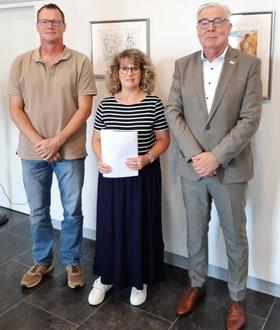 Im Rahmen der Gratulation bedankte sich der Bürgermeister für die geleistete Arbeit und übergab der Jubilarin neben der obligatorischen Urkunde ein Blumenpräsent sowie einen Gutschein. Für den Personalrat gratulierte Michael Becker und überreichte ebenfalls ein Geschenk.