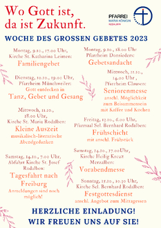 | 17.00 | Do, Pfarrheim Großes Gebet - Gebetsandacht |