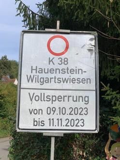 Zum Austausch der Leitung muss die K 38 zwischen Hauenstein und Wilgartswiesen in der Zeit von Montag, 09.10.2023 bis einschließlich Samstag 11.11.2023 voll gesperrt werden. Die Firma Schneider Consulting GmbH führt im Auftrag der Open Grid Europe GmbH (OGE) den Netzausbau TENP Gasleitung durch, welche auch durch den Landkreis Südwestpfalz verläuft und dabei mehrere Straßen quert.