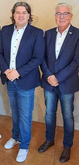 Das Foto zeigt den amtierenden Bürgermeister der Verbandsgemeinde, Wolfgang Denzer (rechts) und Peter Spitzer (links), der ab 01.01.2026 das Amt des Bürgermeisters der Verbandsgemeinde Rodalben übernimmt.