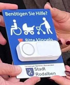 Benötigen bewegungseingeschränkte Personen Hilfe, so klingeln sie und bekommen Hilfe. Haben Sie als Geschäft/ Dienstleister/ Restaurant/… in unserer Verbandsgemeinde keinen barrierefreien Zugang, melden Sie sich einfach bei uns. Sie erhalten dann eine kostenlose Funkklingel.