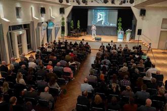 Pirmasens, 17. Oktober 2024. Am Donnerstag, 10. Oktober 2024 luden die Wirtschaftsförderungsgesellschaft Südwestpfalz und die Wirtschaftsförderung Zweibrücken im Rahmen der Standortinitiative SüdWestPfalz zum Unternehmertag Südwestpfalz in das Bürgerhaus Schuhfabrik nach Waldfischbach-Burgalben ein. Circa 230 Unternehmerinnen und Unternehmer folgten dem Aufruf und kamen zum ersten Unternehmertag post Coronapandemie, um zu Netzwerken und einem unterhaltsamen und interaktiven Vortrag des Top-Referenten Ralf Schmitt zu lauschen. Dieser trug den provokanten Titel „Kill dein Kaninchen“. Das musikalische Rahmenprogramm gestalteten die beiden Klavierspielerinnen Clara Bartz und Anouk Woll von der Kreismusikschule Südwestpfalz.