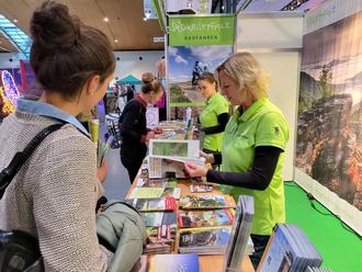 Die Südwestpfalz Touristik e.V. zieht nach neun Tagen offerta in Karlsruhe Bilanz. Vom 28.10. bis 05.11.2023 präsentierte sich die Südwestpfalz Touristik mit der WANDERarena an allen Ausstellungstagen mit einem Informationsstand auf der Verbrauchermesse. Die Besucher mussten förmlich fast schon darüber stolpern. Das umfangreiche Informationsangebot erwartete die Besucher am Stand der Südwestpfalz Touristik e. V. direkt am Eingang zur Halle 1, in der Freizeit Themenschwerpunkt war. Der Wanderführer mit seinen 70 Wandertipps zu Kurz-, Tages- und Mehrtagestouren wurde gerne und zahlreich mitgenommen. Auch die Südwestpfalz Radkarte ist bei den Besuchern nach wie vor beliebt. Neben der bewährten Kinder-Erlebnisbroschüre gab es am Stand auch Tipps zu Ausflugszielen oder geführten Gästetouren. "Viele Besucher der offerta kennen bereits unsere Region, kommen jedes Jahr an unseren Stand und fragen gezielt nach neuen Ausflugs- und Wandertipps", erläutert Landrätin Dr. Susanne Ganster. "Deswegen ist für uns wichtig, hier präsent zu sein. Es war wieder eine gelungene Messe, auf der wir viele Menschen für den Pfälzerwald begeistern konnten". Auch der Teufelstisch wirkte als Magnet. Bei der laufenden Wahl zu Deutschlands Naturwunder 2023 ist der Teufelstisch bei Hinterweidenthal nominiert. Um Interesse und Stimmen dafür zu generieren, platzierten die Tourismus-Experten auffällige Werbemittel am Stand. Dafür können bis zum 12.11.2023 unter www.sielmann-stiftung.de/naturwunder/ noch Stimmen abgegeben werden. "Gegenüber dem Vorjahr war die offerta in diesem Jahr wieder viel, viel besser besucht.", zeigte sich Michaela Herbort, Geschäftsführerin der Südwestpfalz Touristik e. V. mit der Messe zufrieden. "Vor allem an den Sonntagen und am Feiertag war sehr viel los am Stand, aber auch unter der Woche waren unsere Theken bestens frequentiert." Unter dem Motto: Mach Dir ein Bild liefen am Messestand Filme zu den einzelnen Wanderregionen in der Südwestpfalz und deren Themen. Die kurzen Filmsequenzen ließen Besucher immer wieder staunen und luden zum Verweilen am Stand ein.