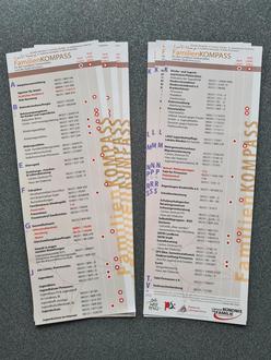Der Familienkompass enthält in kompakter und übersichtlicher Form zahlreiche Kontakte, die Familien in ihrem Alltag aber auch in Krisensituationen unterstützen können.