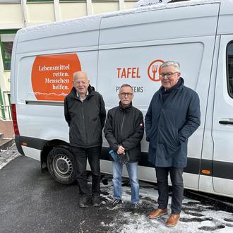 Übergabe der gesammelten Lebensmittel. Von links: Werner Böh, Horst Meffert und Bürgermeister Wolfgang Denzer