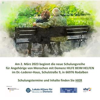 Am 02.03.2023 beginnt die Schulungsreihe Hilfe beim Helfen für Angehörige von Menschen mit Demenz. An fünf Abenden und einem Samstagvormittag beschäftigen sich Angehörige mit allem Wissenswerten rund um das Thema Demenz.