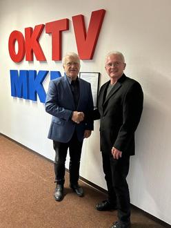 (v.l.n.r.) Bernhard Pyka übergibt auch mit dem symbolischen Handschlag Norbert Arnold die Geschäftsführung des MKN.