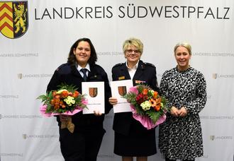 Die amtlichen Verpflichtungen von zwei Positionen innerhalb Kreisjugendfeuerwehr nahm Landrätin Dr. Susanne Ganster mit dem Monatswechsel vor. Am 31.01.2024 erhielten Carmen Schefsky als Kreisjugendfeuerwehrwartin und Dunja Mathias als deren Stellvertreterin ihre Urkunden von der Landrätin.