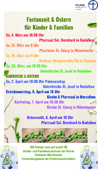 Der Neokatechumenale Weg betet in der Fastenzeit (27. Februar bis 31. März 2023) täglich von Montag bis Freitag um 6.00 Uhr in der Unterkirche von St. Josef die Laudes. Alle Pfarrangehörigen sind herzlich eingeladen.