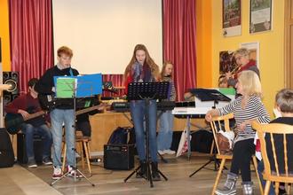 Junge Leute unter Leitung von Ricarda Kappauf musizierten und sangen für die Seniorinnen und Senioren aus Frankenroda und Ebenshausen