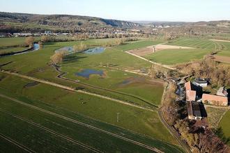 Für die Offenhaltung der Grünlandflächen mit eingestreuten Gewässern und Baumgruppen sorgen die Tiere des Bio-Landwirtschaftsbetriebes mit Hofladen auf dem Stiftsgut Wilhelmsglücksbrunn. Galloways, Wasserbüffel und Kaltblut-Pferde stehen das ganze Jahr auf den großflächig eingezäunten Weiden. Informationstafeln und ein Vogelbeobachtungsstand laden Besucher zum Verweilen und Staunen ein