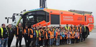 Nach der Ankunft gab es zunächst eine kurze Sicherheitseinweisung. Danach ging es mit dem Bus einmal über das gesamte Flughafengelände - vom Terminal über die Start- und Landebahn bis hin zur Flughafenfeuerwehr, die natürlich besonders spannend für uns war.