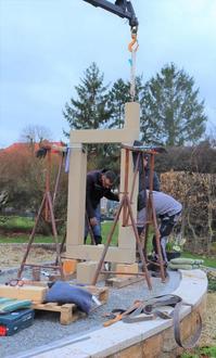 Noch muss der Weg zur Stele ausgebaut werden, aber die ersten Namensplatten können angebracht werden.