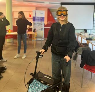 Abschließend hatten die Jugendlichen die Möglichkeit zu erfahren, wie es sich anfühlt auf Hilfe angewiesen zu sein. Besonders spannend empfanden sie das Tragen eines Alterssimulationsanzuges. Die Kolleginnen der Hausgemeinschaft freuen sich über so viel Interesse!