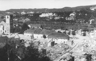 Blick auf die zerstörte Creuzburger Innenstadt,