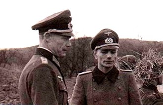Die beiden deutschen Offiziere Walborn (links) und Prokop Mitte März 1945 bei der Ausbildung ihrer Truppen an der Werra.
