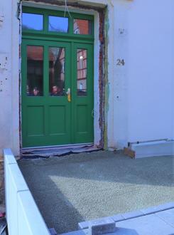 Blick auf den gerade errichteten barrierefreien Zugang zum Multihaus.