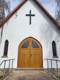 Die neue Tür passt sich hervorragend dem Gebäude an und passt gut zur baulichen Gestaltung der Kapelle.