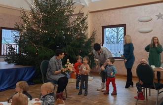 Zu einer kleinen Abschiedsfeier für unsere liebe Kollegin Gabriele Günther waren am 14.12.2023 alle kleinen und großen „Schlossmäuse“, Elternvertreter, Gemeindearbeiter und ehemaligen Kolleginnen eingeladen. Bei Kaffee und Kuchen (ein herzliches Dankeschön an alle fleißigen Mamas) verabschiedeten wir unsere Gabi mit einem Lied und Geschenken. Jedes Kind überreichte eine Rose, 37 Rosen für 37 Dienstjahre im Bischofrodaer Kindergarten.
