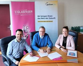 Nach dem Beschluss im Stadtrat unterzeichnete Bürgermeister Rainer Lämmerhirt im Beisein von Frau Bärenklau als VG-Vorsitzende eine gemeinsame Erklärung zwischen der GlasfaserPlus GmbH Köln und der Stadt Amt Creuzburg über die weitere Vorgehensweise beim Ausbau des schnellen Internets im Amt Creuzburg, beginnend 2026 mit dem Ortsteil Mihla. Die GlasfaserPlus wurde durch Markus Pitters, Gebietsmanager, vertreten.