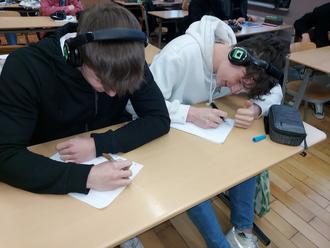 In drei Räumen der oberen Etage der Regelschule Mihla sitzen am Mittwoch rund 70 Schülerinnen und Schüler mit Kopfhörern. Es war der Probelauf für die Abschlussprüfung in der Goldenen Aue im Juni. Die Feuertaufe mit neuer Technik wurde dabei mit Bravour bestanden.