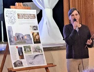 Frau Ines Andrazcek, eine der drei Teilnehmer am Interessenwettbewerb für einen Gedenkort in Creuzburg, bei der Vorstellung ihres Entwurfes.