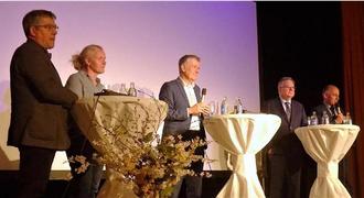 Im Anschluss fand ein Podiumsgespräch mit Landesbischof Friedrich Kramer, Rainer Lämmerhirt, Bürgermeister und Initiator des Denkmalausschusses, sowie dessen Mitglieder Marlene Lux und Uwe Schwanz statt. Moderiert wurde das Gespräch, welches viele aufmerksame Zuhörer im Saal fand, von Dr. Sebastian Kranich von der Evangelische Akademie Thüringen. Lag wiederum in den Händen von Kantorin Anna Fuchs-Mertens.