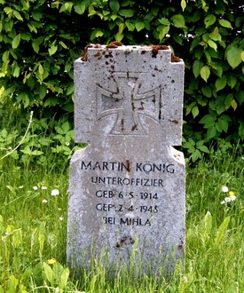 Während in Mihla die Gefallenen auf dem Friedhof beigesetzt wurden tobten noch bis zum 8. Mai heftige Kämpfe und fielen dutzende weitere Mihlaer in den letzten Kriegstagen. Grab des Unteroffiziers König, der im Panzer bei Hahnroda fiel.