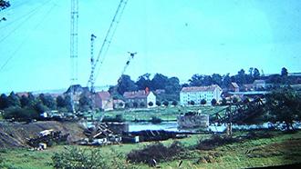 Die zerstörte Mihlaer Eisenbahnbrücke, hier eine Aufnahme aus den 60er Jahren, als die Reste der Brücke abgebaut wurden.