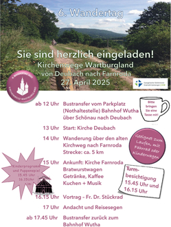 Ab 12 Uhr Kirchenwege im Wartburgland, Wandertag des Kirchenkreises