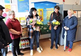 Mit dabei auch Frau Fiedler vom Tegut-Markt. Im Eingangsbereich des Marktes, sicher vor mutwilligen Beschädigungen, wurde der „Automat“ nun eröffnet.