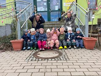 Zum Wochenausklang war es dann am Donnerstag endlich soweit: Der Osterhase besuchte uns "offiziell". Endlich durften alle Kinder auf dem gesamten Gelände an unterschiedlichsten Orten Osternester suchen. Was für eine Freude, als sie die ersten selbstgebauten Nestchen in ihren Händen hielten, die sie in der Kita, am Roten Schloss und in Lauterbach gefunden hatten! Nach einem aufregenden Tag kehrten alle Kinder glücklich mit einem Osternest in die Kita zurück.