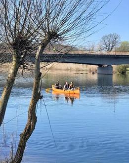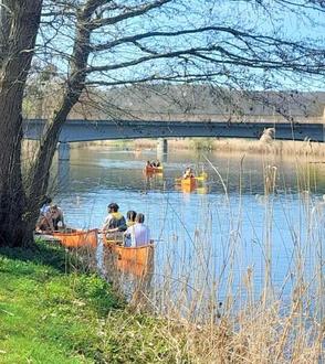 Erstes Paddlerleben auf der Werra. Der schöne Start in den Frühling lockte schon Mitte April die ersten wagemutigen Wasserwanderer noch lange vor dem offiziellen Start in die Saison aufs Wasser.