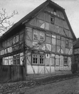 Das im 17./18. Jahrhundert erbaute, stattliche Fachwerkhaus soll einst den Herren von Wangenheim als Gerichtsgebäude gedient haben. 1831 wurde es aufgrund einer drohenden Cholera-Epidemie als Krankenhaus vorbereitet, da es zu diesem Zeitpunkt leerstand. Belegt ist zudem die Nutzung als Standesamt in den 1920-er Jahren. Als einziges Wohnhaus im Ort wurde es bereits 1909 durch den Landeskonservator Georg Voß als denkmalwürdig eingeschätzt.