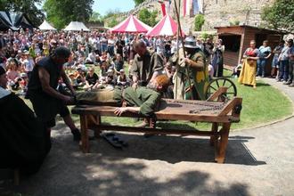 Besonders sei hier noch der Kampf um die historische Werrabrücke am Sonnabendmorgen erwähnt. Ab 10 Uhr steigt das Spektakel an der Brücke; anschließend werden die Sieger des Kampfes ein Kreuz zur Burg tragen und dort errichten, wie vor genau 1300 Jahren der Heilige Bonifatius.