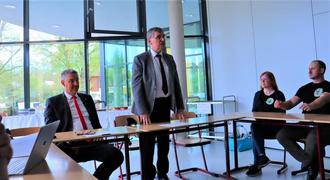 Einige Schüler erklärten ihr Projekt gemeinsam mit ihren Lehrerinnen und Schulleiterin Frau Klose.