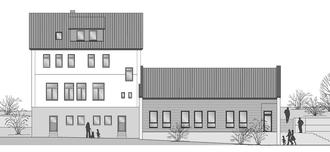 Nach der fast abgeschlossenen Sanierung des Bestandsgebäudes ist noch in diesem Jahr der Baubeginn für den eingeschossigen Anbau geplant, welcher mit seinem 112 m³ großen Mehrzweckraum neue Nutzungsmöglichkeiten bieten soll.