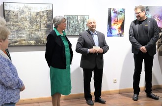 Joachim Mühe, Vorstandsmitglied der Stiftung, nahm in seinem Grußwort darauf Bezug und erläuterte das Anliegen, während Teresa Dietrich aus Fulda auf die einzelnen Künstler*innen einging, deren Biographien anriss und eine Einführung in die Vielfalt der angebotenen Werke aus Malerei, Grafik und Skulptur darbot.