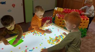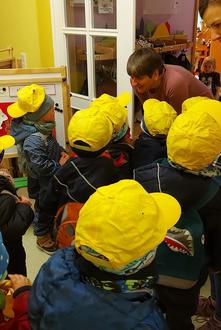 Mit einem herzlichen Willkommen erwarteten uns die Kinder und Erzieherinnen dort. Es gab so viel zu erkunden. In den Funktionsräumen, wie dem Bauraum, Rollenspielzimmer oder dem Atelier sieht es so ganz anders aus als bei uns im Kindergarten. Das Spielen mit den neuen Kindern ist eine spannende Erfahrung für alle Hainichräuber.