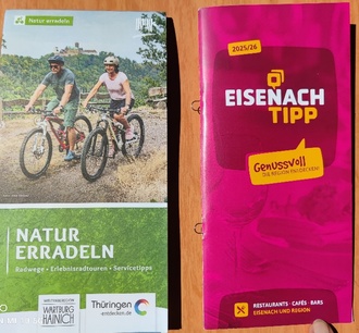 Außerdem auch in der Tourist-Information erhältlich: die neue Informationsbroschüre der Welterberegion Wartburg-Hainich „Natur erradeln - Radwege, Erlebnisradtouren und Servicetipps.