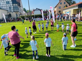 Am 1. Mai 2024 gingen mehr als zwanzig Kinder des Kindergartens Cuxhofwichtel an den Start des 28. Mihlaer Hainichlaufs.