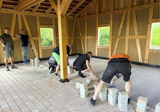 Seitdem ging es Schlag auf Schlag mit der Umsetzung des Wiederaufbaus der Köhlerbaude vorwärts. Uwe Nowatzky und Dirk Mäurer mussten ihre „Stammtisch“-Freunde (Hans Duscha, Hans-Christian Duscha, Volker Bönhardt, Alexander Vinz, Torsten Schmidt, Peter Duscha, Toni Nickol und Hendrik Mäurer) und weitere Helfer, wie Thomas Wuth, nicht lange überreden und schon bald wurden die Fundamente freigelegt, das Fachwerk aufgestellt, das Dach gedeckt, die Fachwerkkonstruktion gestrichen, die Gefache verklinkert, die Giebel verschalt, der Fußboden gepflastert und die Fensterläden angebracht. Firmen, wie das Ausbauteam Mihla, die Lehmbaufirma Werneburg aus Ebenshausen, die Dachdeckerfirma Kasper, die Firma Nowatzky Containerdienst, die Schmiede Wiegand Nazza, die Gartenbaufirma Möbius und der Malerbetrieb Meyfarth, packten tatkräftig mit an.